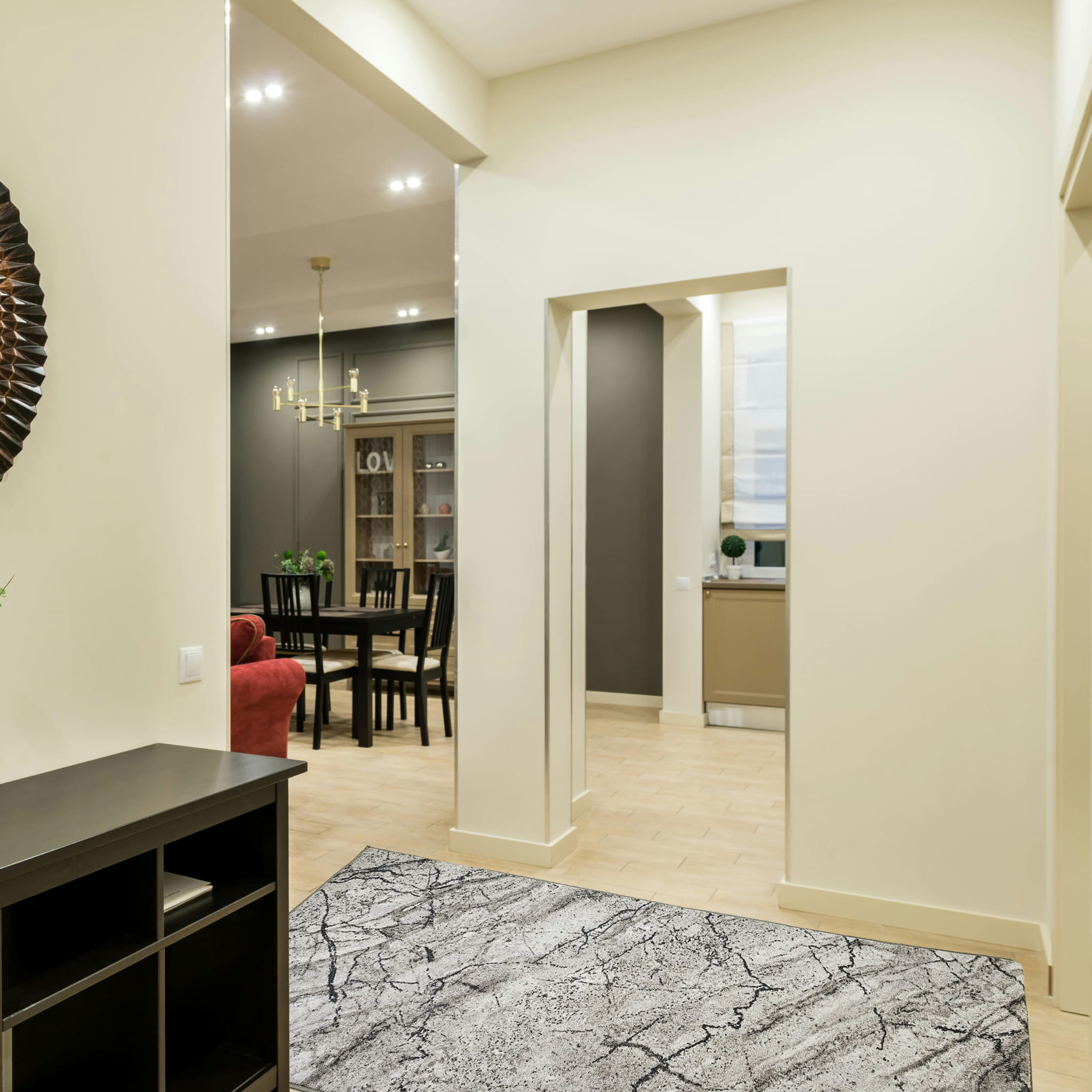- Uniwersalny charakter – dywan pasuje zarówno do wnętrz nowoczesnych, jak i bardziej stonowanych aranżacji.