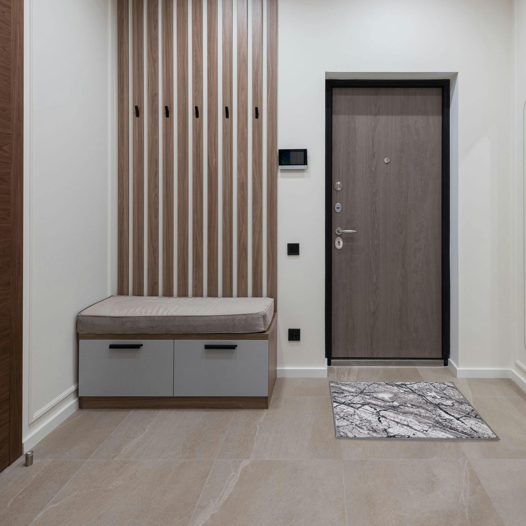 - Wzór inspirowany marmurem – elegancki motyw w odcieniach szarości i bieli nadaje wnętrzu nowoczesny charakter.