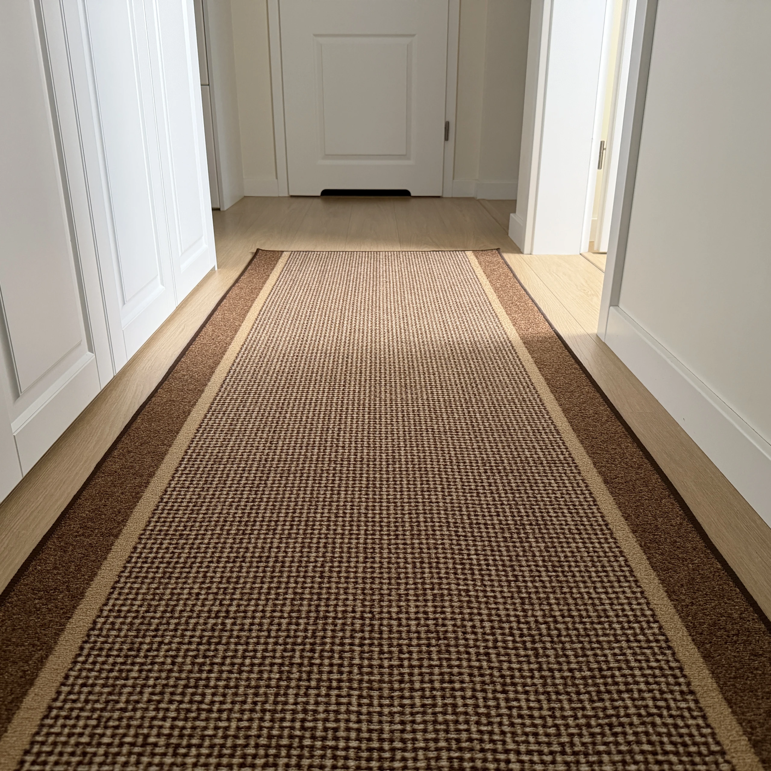 Chodnik TEREZ 17 sprawdzi się idealnie w przedpokojach, korytarzach oraz na schodach. Dzięki ciepłej kolorystyce brązu wnosi do wnętrza przytulność i elegancję.