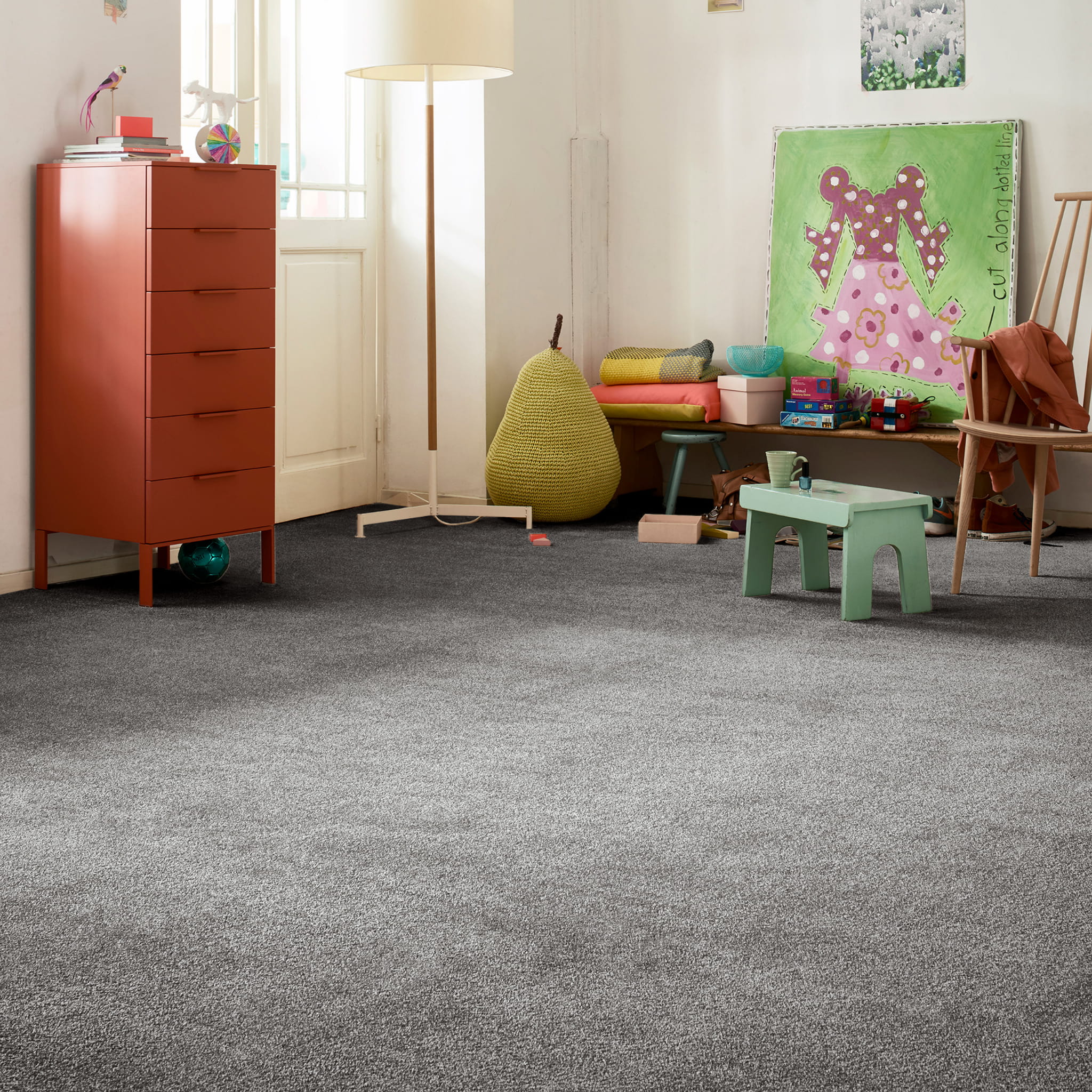 Jej szlachetny szary kolor i trwałość sprawiają, że wykładzina idealnie pasuje do różnych pomieszczeń: